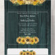 Invite guests to your upcoming wedding with a Rustic Teal Sunflower All in One Wedding Invite. Invite design features a rustic wooden background with an elegant bouquet of sunflowers. Personalize with the groom and bride's names along with the wedding date and location. Additional wedding stationery available with this design as well.