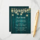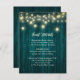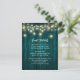 Provide your guests with important details with this teal rustic wedding enclosure card featuring string lights on a barn wood background. Two burlap hearts at the back. Matching items available.