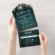 Rustic Teal Wood String Lights Wedding All In One Invitation