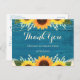 Rustic Teal Wood Sunflower Wedding Thank You Postcard