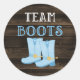 Rustic Team Boots Boy Gender Reveal Classic Round Sticker