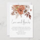 Rustic Terracotta Florals Love Thanks Wedding. Beautiful autumnal coloured florals with boho vibes are at the top, and Love and Thanks is in a set handwritten style. Easily personalise the rest of the text as required. Available digitally or printed.
