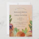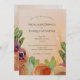 A beautifully handpainted rustic floral wedding invitation with a semi-formal serif font. An elegant, yet slightly casual, wedding invitation for any season of the year. Easily edit the template to your desired wedding names and details by using Zazzle's template tool. This invitation has an abstract floral design; the original art was made using alcohol ink in colours of terracotta, green and metallic golden brass. The original floral artwork was made with alcohol ink. Rustic Terracotta Green Wedding Invitation.