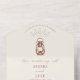 Terracotta rust colour illustration of vintage style oil lantern with line art botanical border. Background is off white. Includes rsvp with qr code