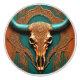 Rustic Terracotta Teal Western Country Bull SKull Ceramic Knob