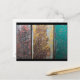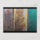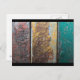 A postcard with a cool looking rustic texture as a background. Vertical stripes of red yellow and green paint flaking and peeling off a rusted old metal wall. Looks old and weathered and faded.