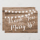 Thank you wedding officiant card featuring a rustic wood background, string lights, and a personalized template.
