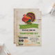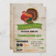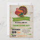 Pretty and rustic Thanksgiving day dinner party invitations with a colourful turkey, banners and fun typography against a worn, vintage paper illustration.