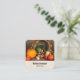 Business cards with a photograph of a thanksgiving harvest, set on a rustic wooden table. Pumpkin, potatoes, squash etc... make up this bountiful collection of food. Colourful autumn leaves surround the cornucopia basket.
