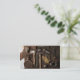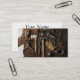 This business card features a photograph of rustic tools on a wooden surface.