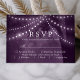 Complete your rustic woodland wedding suite with this enchanting Purple RSVP postcard. Featuring a majestic tree adorned with twinkling string lights, this design perfectly complements your nature-inspired celebration. Guests can easily respond with their attendance details and meal preferences, making wedding planning a breeze.