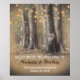 Rustic country wedding reception poster featuring an enchanting outdoor woodland wedding setting, glowing string twinkle lights, a romantic carved heart on the trunk of a tree with your initials and your marriage details.