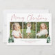 Cute, Modern yet Rustic Christmas Holiday Photo Cards featuring adorable little forests of rustic Christmas trees and Merry Christmas in modern typography on a soft modern pastel colour palette of pink and sage green. Add three of your favourite photos and a custom greeting for the perfect holiday card!