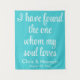custom wedding backdrop for reception, calligraphy back drop photo booth, tapestry ceremony banner signage decor, I have found the one, my soul loves song of, solomon 3:4 Bible scripture quote, personalized rustic couple shower sign, personalised name head table dinner, photobooth prop engagement party bridal, customized decoration girly pretty chic