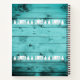 Personalized camper RV journal notebook- Cute rustic teal wood RV camping gift for RV retired couples, and rv campers. Reads 'Our RV Adventures' in handwritten look, white letters. Underneath is personalized names of couple or family. With a cute, white border at the top and bottom of rows of vintage motorhome camper RVs and pine trees. Against a turquoise teal background of rustic, distressed wood boards with knotholes. Fun retirement gift for mom and dad that like to take road trips. Note: All images are printed. Not actual wood. Will appeal to many different tastes and styles. Visit our online Zazzle.com/angela65 shop for matching RV theme decor and more office gifts and unique notebooks.