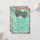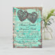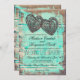 Rustic Two Hearts Barn Wood Aqua Wedding Invites