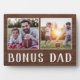 Charming wood sign for Father's Day, birthdays, or new stepdads features two photos side by side on a rustic background with "Bonus Dad" beneath.