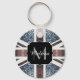 Rustic UK flag red blue sparkles glitters Monogram Keychain