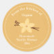 A rustic with yellow kraft background Label Sticker and an illustration of a vanilla flower and its dried sticks for your homemade Vanilla-based products or recipes (extract, dried sticks, cake, ice cream, candle, soap). Perfect for labelling and sharing your artisanal products with friends and family, or to sell your products on a market!