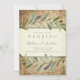 An rustic, elegant botanical wedding invitation bordered in blue-green watercolor vines with a distressed wood background.