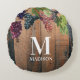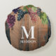 Rustic Vineyard Wood & Grapes Monogram Round Pillow
