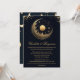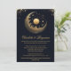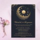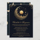 Capture the magic of the cosmos with our Rustic Vintage Celestial Wedding Invitation. Featuring a captivating graphic image of a decorative moon, sun, and stars in luxurious gold colours, this invitation sets the stage for an enchanting celestial-themed celebration. Our engaging wedding wording template ensures your invitations convey just the right sentiment for your special day. With added touches of gold glitter on the corners against a sophisticated black background, our invitation exudes elegance and charm.