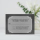 Trendy Typography chalkboard look wedding RSVP response card done to look like a vintage black board. Graphics of a white decorative scroll border, with a white semi transparent text area and black text done in stylish fonts decorate the card. Personalize all the text to suit your wedding needs. Great for rustic, country chic, shabby