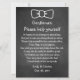 Rustic look wedding favour basket sign, with an vintage chalkboard look and graphics of a white bow tie outline, at the top. Personalize the white text to read what ever you want to use the sign for. Great for anytime of the year.