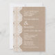 This elegant invitation is ideal for a stylish wedding with a vintage flair. It features a column of doilies on the left edge with a ribbon on top and a soft burlap texture on the background. Chic and delicate design great to celebrate a memorable event.