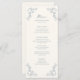 Elegant rustic floral line art wedding menu card with a dusty blue coloured vintage botanical frame design.