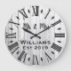 Beautiful, unique, one-of-a-kind personalized design features a rustic wood with black personalization his and her names in a script font overlay design and the last name and year established in a bold script with a printed wood effect background. Personalize this clock by adding your personal information. Makes a great wedding, anniversary, or housewarming gift. Click "personalize this template" to change the names, fonts, and colours to create a unique one of a kind design. What an elegant, rustic accessory for your living room, bedroom, or family room. If you need any help with customization please email me at ybnormalone @gmail.com. Thanks for stopping by www.zazzle.com/Personal_Creations. ©Karen Hall for Personal_Creations at Zazzle.