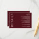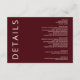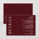 Rustic Warm Burgundy Modern Minimalist Wedding Details Card