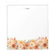 Autum floral notepad featuring watercolor illustrations of orange , gold and cream flowers with foliage garland. This whimsical floral notepad will be perfect as a personalized gift. Personalize by adding a name or short phrase.