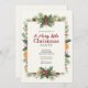 Charming watercolor Christmas invitation with hand-painted holly leaves, pine branches, and red berries creating a natural botanical border. The soft, artistic style brings warmth to your holiday gathering announcement. Perfect for cozy Christmas parties and intimate seasonal celebrations with its elegant cream background and festive greenery.