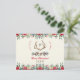 Rustic elegant deer antlers and watercolor seasonal floral monogrammed family personalized traditional Christmas holiday greeting card with fully editable text featuring coral red, ivory cream, burgundy, and green floral borders with seasonal winter flowers, pine cones, fir branches, holly berries, and foliage over a plain ivory background.. ++++++++++++ Easy to customize with your family name, initial, text, sender address and year!