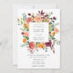 This beautiful wedding invitation is framed by a gorgeous floral palette of burgundy, gold, coral, blush and leafy greens. Personalize with your information for your big event.