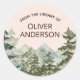Rustic Watercolor Forest & Mountain Bookplate Classic Round Sticker