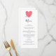 This design features a rustic watercolor heart. The black typography and red/orange coloured heart contrast each other. The hand painted heart displays splashes of watercolor paint epitomizing passion. A romantic simple design with a rustic touch. This design is ideal for any wedding theme. The perfect all season wedding menu card design. Matching wedding invitations and other stationery items are also available.