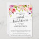 This bright and cheery invitation is designed to give the bride to be a wonderful shower even if you can't be together. It features a pretty design with hand painted watercolor flowers resembling pansies, wildflowers or violets, in shades of pink, red, purple & peach, with leaves and foliage strewn about. The text is written in lacy script calligraphy. Even though we can't be together, we can still celebrate together!