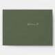 Elegant stylish rustic modern forest green wedding invitation envelope with watercolor evergreen trees landscape liner and personalized script sender return address.