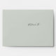 Elegant stylish rustic modern sage green wedding invitation envelope with watercolor evergreen trees landscape liner and personalized script sender return address.