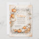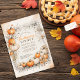 At its heart, charming pumpkins adorned with rustic watercolor foliage and delicate flowers create an inviting frame along the border. Vines gracefully encircle the entire invitation, complementing the colour scheme of orange, white, cream, and dusty green, which adds a natural and seasonal touch.