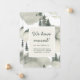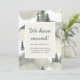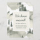 This rustic mountain watercolor features pine trees and splashes, and is a perfect way to let family and friends know of your change of address. New address information, and simple hand script are additions to the front of this announcement card.
