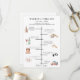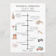 Rustic colourful watercolor wedding day elements, timeline program. Card features church, wedding rings, bottle with glass, plate setting, music notes, cake, and retro car. Design features additional line for optional live streaming address.