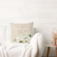 This vintage style romantic floral throw pillow features a rustic parchment paper design background with watercolor ranunculus flowers. A delicate bouquet of ranunculus and greenery is pictured on the bottom. Sample names of a newlywed couple and wedding date are printed above. You can personalize the pillow to include your own custom names or text.