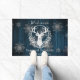 Rustic Watercolor White Reindeer Personalize Blue Doormat