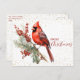Rustic Watercolor Winter Cardinal Holly Branch Holiday Postcard