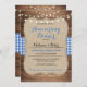 Change the text to suit your Anniversary Party. This rustic wood and blue check invite is the perfect combination for a romantic elegant look. Back print included