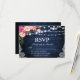 Rustic Wedding Blue Wood Floral Lights Lace RSVP Card