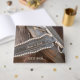 Horse saddle close up vintage antique old country western farm style wedding reception guest book. Rustic brown rodeo equestrian art printed design. Personalize names and date. Image copyright Marg Seregelyi Photography.